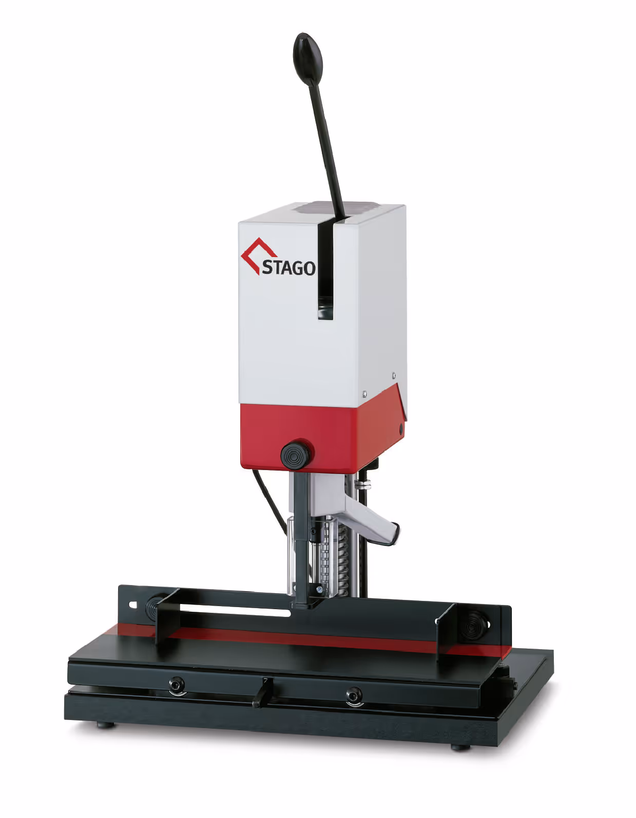 Built for constant use, STAGO machines offer robust, ergonomic design and versatile performance. With adjustable stops for sizes up to DIN A3, they drill through paper, cardboard, textiles, leather, and plastics to depths of 60 mm. Various table options ensure flexibility for any workflow.