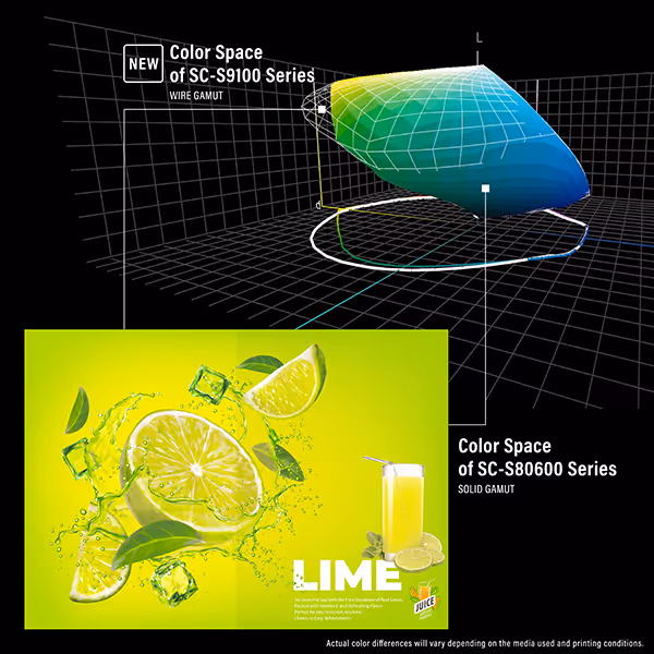 The SureColor S9160 redefines signage printing with outstanding image quality and a broader colour gamut, thanks to its 11-colour UltraChrome GS3 ink set featuring Red, Orange, and a newly introduced Green.